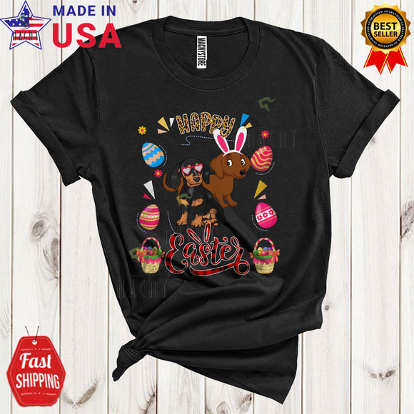 Happy Easter Cute Funny Easter Day Leopard Plaid Eggs Hunt Couple Bunny Dachshund Dog Lover T-Shirt