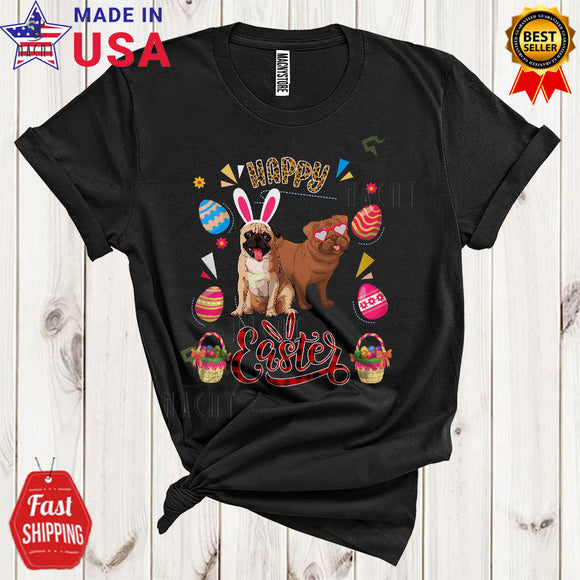 Happy Easter Cute Funny Easter Day Leopard Plaid Eggs Hunt Couple Bunny Pug Dog Lover T-Shirt