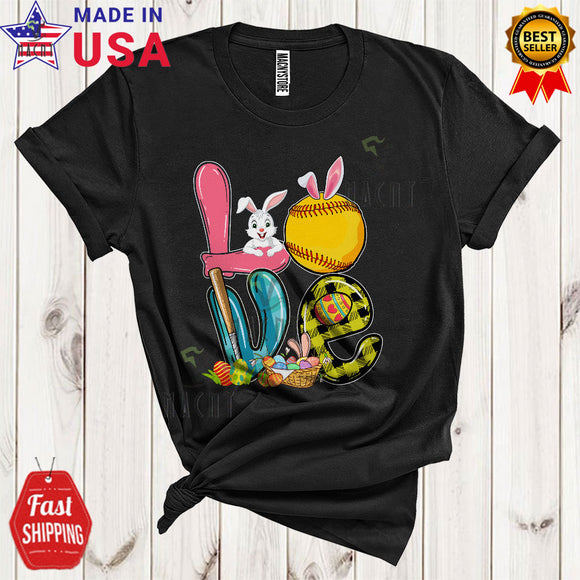 LOVE Cool Happy Easter Day Plaid Bunny Eggs Softball Sport Player Team Lover T-Shirt