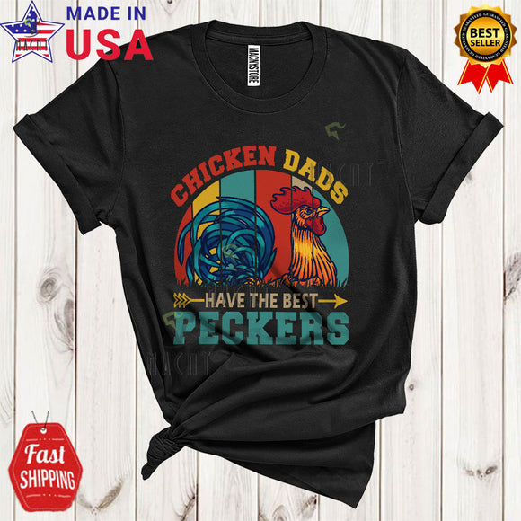 Vintage Retro Chicken Dads Have The Best Peckers Cool Matching Father's Day Rooster Farmer Family T-Shirt