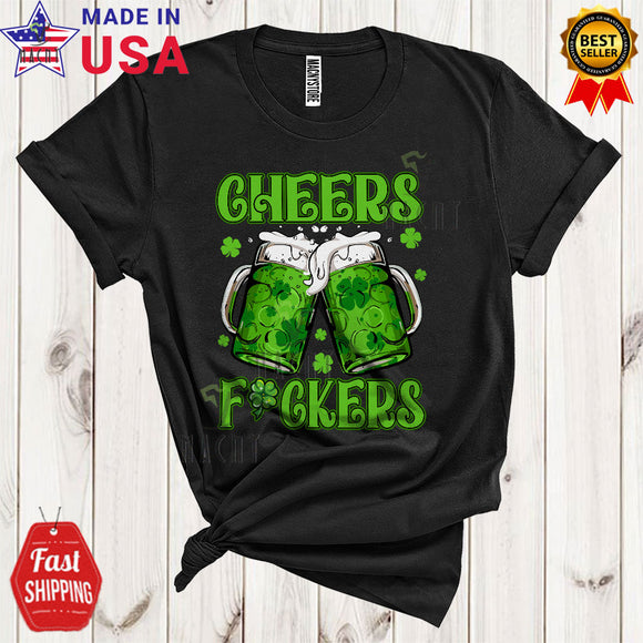 Cheers F*ckers Funny Cool St. Patrick's Day Irish Beer Drinking Shamrocks Drunker Lover T-Shirt