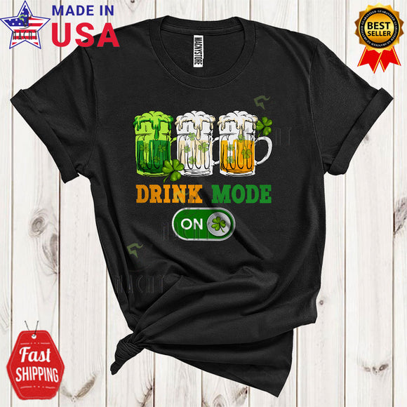 Drink Mode On Funny Cool St. Patrick's Day Irish Drinking Three Beer Glasses Matching Drunker Group T-Shirt