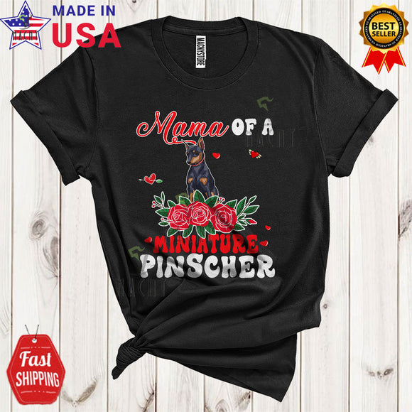 Mama Of A Miniature Pinscher Cute Happy Mother's Day Family Roses Flowers Dog Lover T-Shirt
