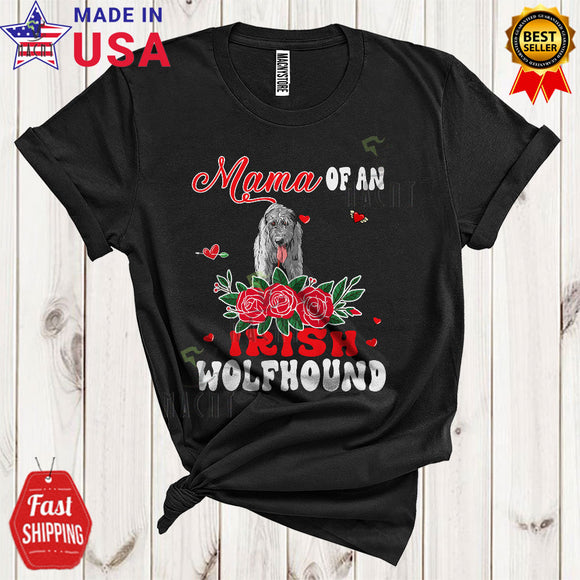 Mama Of An Irish Wolfhound Cute Happy Mother's Day Family Roses Flowers Irish Wolfhound Dog Lover T-Shirt