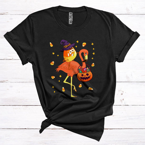 Flamingo With Candy Corn Witch Cute Halloween Costume Trick Or Treat Pumpkin Flamingo Lover T-Shirt