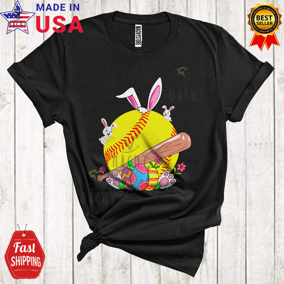 Bunny Softball Team Funny Cool Easter Egg Hunt Lover Matching Softball Sport Playing Player T-Shirt