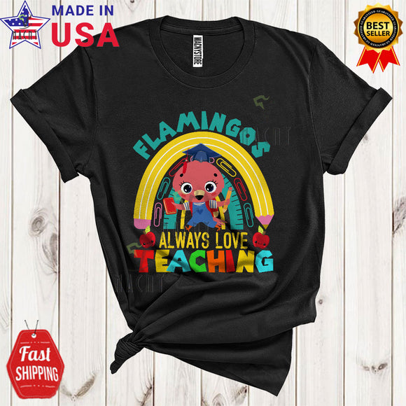 Flamingos Always Love Teaching Cute Cool Back To School Teachers Flamingo Pencil Rainbow T-Shirt