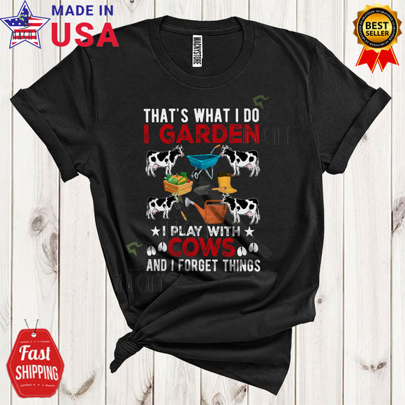 What I Do I Garden I Play With Cows Cool Funny Father's Day Gardening Farmer Flowers T-Shirt