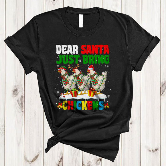 Dear Santa Just Bring Chickens, Lovely Three Chicken Farmer, X-mas Farm Animal Lover T-Shirt