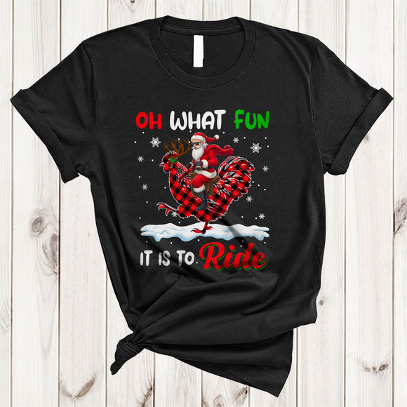 Oh What Fun It Is To Ride, Awesome Santa Riding Chicken Red Plaid, Farmer X-mas Animal T-Shirt