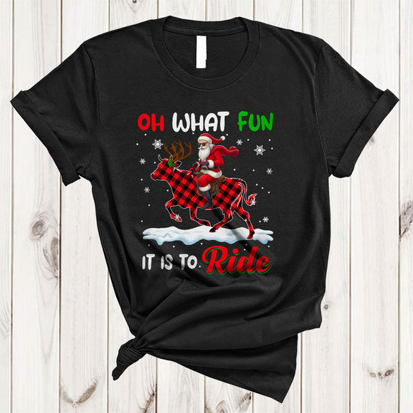 Oh What Fun It Is To Ride, Awesome Santa Riding Cow Red Plaid, Farmer X-mas Animal T-Shirt