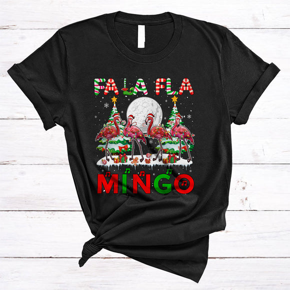 Fa La Fla Mingo, Wonderful Christmas Four Santa Flamingos Lover, X-mas Lights Tree Snow T-Shirt