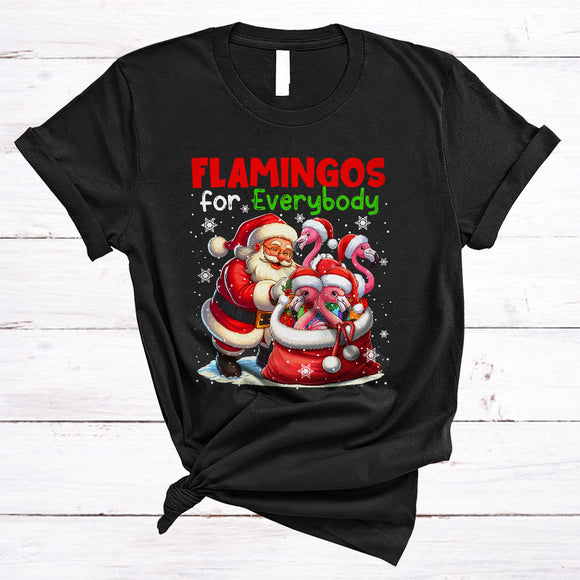 Flamingos For Everybody, Joyful Christmas Flamingo In Santa Bag, Farmer X-mas Family Group T-Shirt