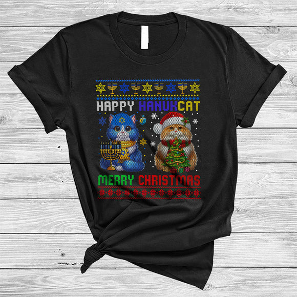 Happy Hanukcat Merry Christmas, Adorable Lovely X-mas Kitten Hanukkah, Sweater Animal Lover T-Shirt