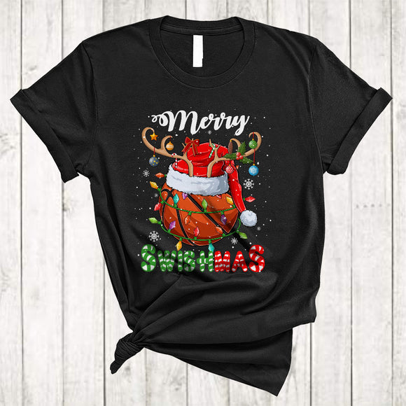 Merry Swishmas, Joyful Cool Christmas Santa Reindeer Basketball, X-mas Lights Snow Sport T-Shirt