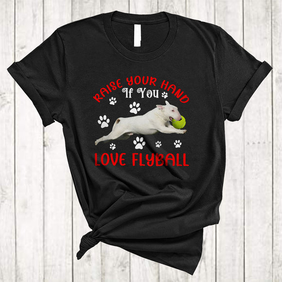 Raise Your Hand If You Love Flyball, Funny Cute Bull Terrier Playing Tennis, Puppy Paws Sport T-Shirt