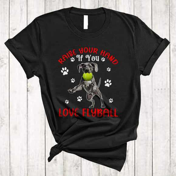 Raise Your Hand If You Love Flyball, Funny Cute Great Dane Playing Tennis, Puppy Paws Sport T-Shirt