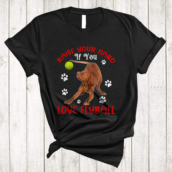 Raise Your Hand If You Love Flyball, Funny Cute Vizsla Playing Tennis, Puppy Paws Sport T-Shirt