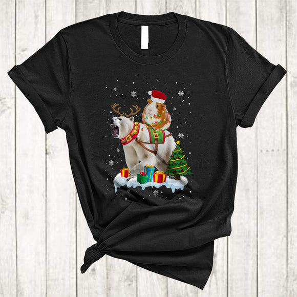 Santa Guinea Pig Riding Polar Bear, Lovely Merry Christmas Guinea Pig, X-mas Polar Bear Snow T-Shirt