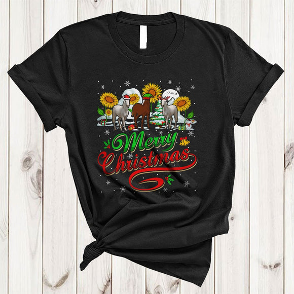 Merry Christmas, Cool Lovely Three Horses With Sunflower, Snow Around Farm Farmer X-mas T-Shirt