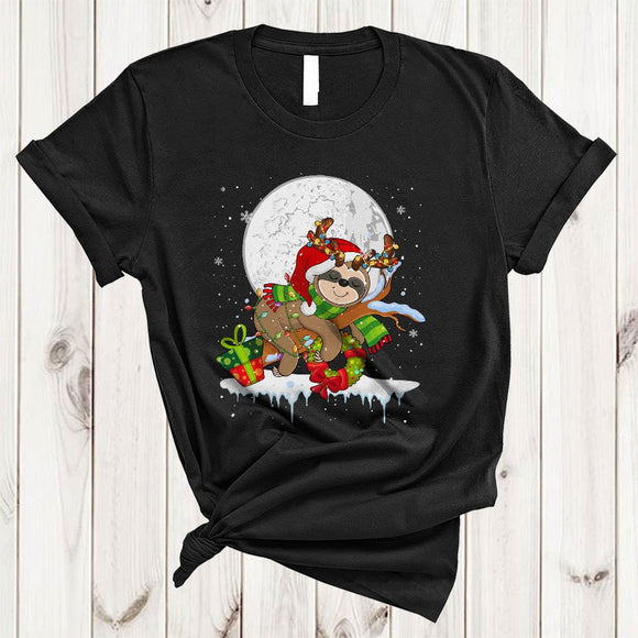 Santa Reindeer Sloth Snow Around, Cool Joyful Christmas Moon, Matching X-mas Animal Lover T-Shirt