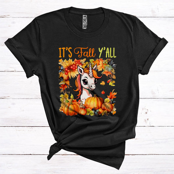 Thanksgiving It's Fall Y'all Unicorn Pumpkin Floral Magical Animal Lover T-Shirt