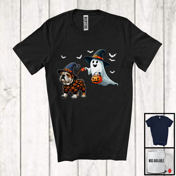 Boo Walking With Bulldog; Lovely Halloween Costume Witch Ghost; Family Group T-Shirt