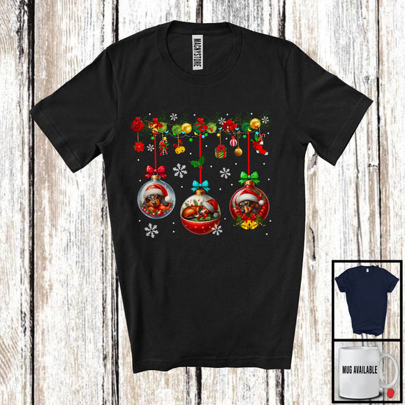 Dachshund Sleeping In Christmas Ornaments; Awesome X-mas Santa Dog Lover; Snowing Around T-Shirt