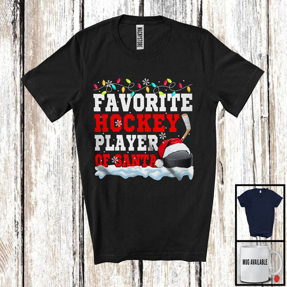 Favorite Hockey Player Of Santa; Proud Christmas Santa Sport Playing Team; X-mas Snowing T-Shirt