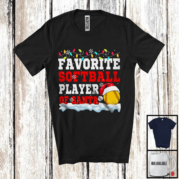 Favorite Softball Player Of Santa; Proud Christmas Santa Sport Playing Team; X-mas Snowing T-Shirt