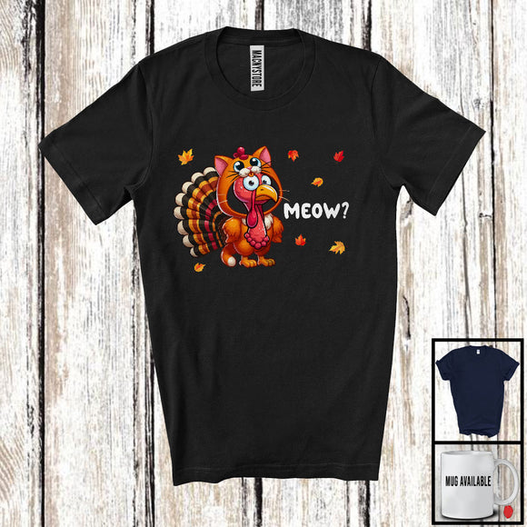 Meow; Wonderful Thanksgiving Fall Autumn Leaves Cat Lover Turkey; Animal Family Group T-Shirt