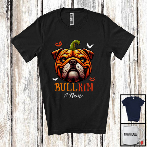Personalized Bullkin; Scary Halloween Cosplay Animal; Custom Name Bulldog Pumpkin Face T-Shirt