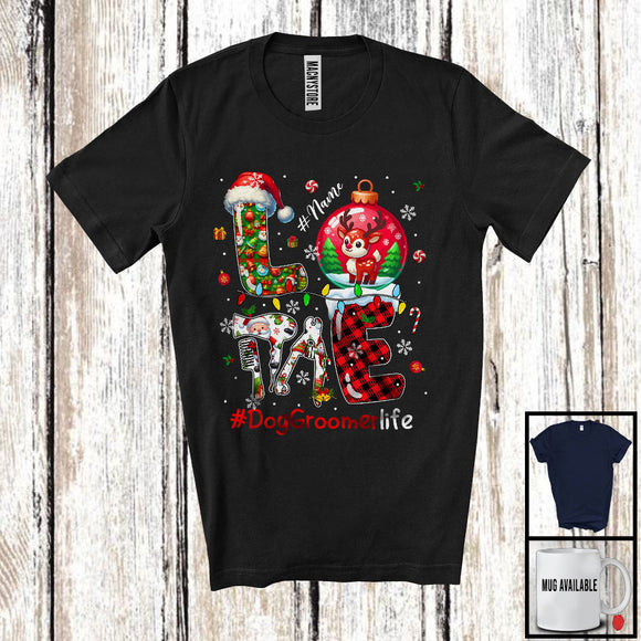 Personalized Custom Name LOVE Dog Groomer; Lovely Christmas Plaid Ornament Claw Cutter T-Shirt