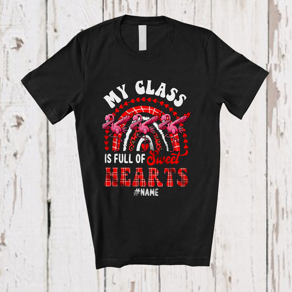 Personalized My Class Full Of Sweet Hearts; Lovely Valentine 3 Dabbing Flamingos; Teacher Rainbow T-Shirt