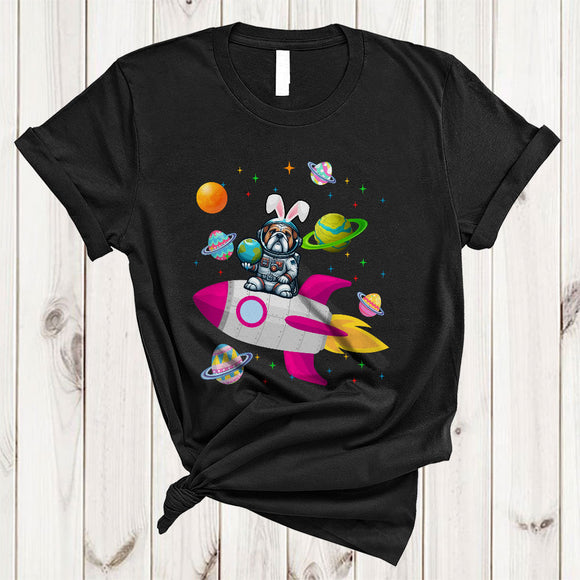 Bulldog Bunny Astronaut With Easter Egg Basket, Lovely Easter Space, Egg Hunt Group T-Shirt