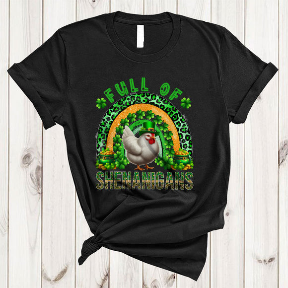 Full Of Shenanigans, Adorable St. Patrick's Day Chicken Lover, Leopard Plaid Rainbow Shamrock T-Shirt