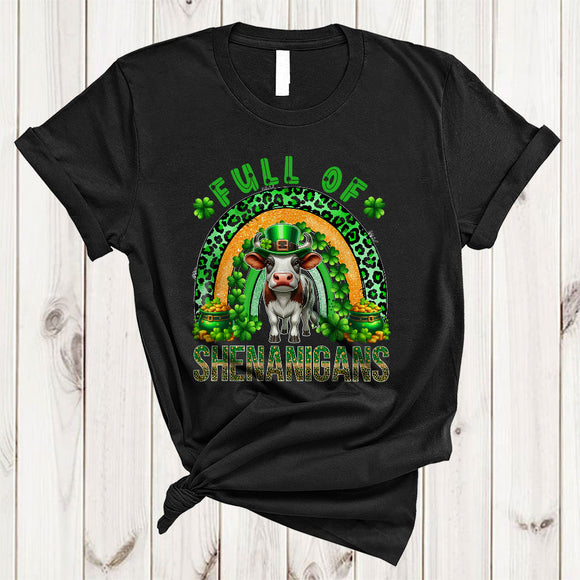 Full Of Shenanigans, Adorable St. Patrick's Day Cow Lover, Leopard Plaid Rainbow Shamrock T-Shirt