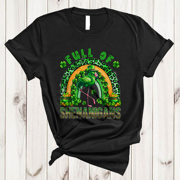 Full Of Shenanigans, Adorable St. Patrick's Day Flamingo Lover, Leopard Plaid Rainbow Shamrock T-Shirt