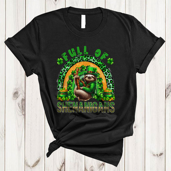 Full Of Shenanigans, Adorable St. Patrick's Day Sloth Lover, Leopard Plaid Rainbow Shamrock T-Shirt
