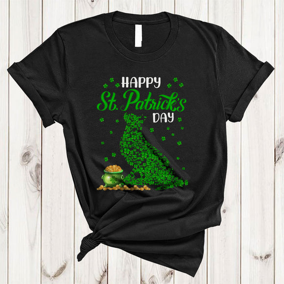 Happy St. Patrick's Day, Amazing St. Patrick's Day Shamrocks Cat Shape, Matching Animal Lover T-Shirt