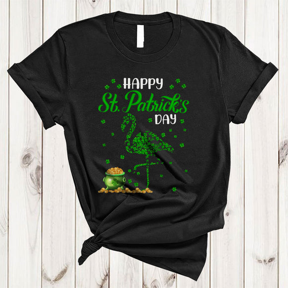 Happy St. Patrick's Day, Amazing St. Patrick's Day Shamrocks Flamingo Shape, Matching Animal Lover T-Shirt