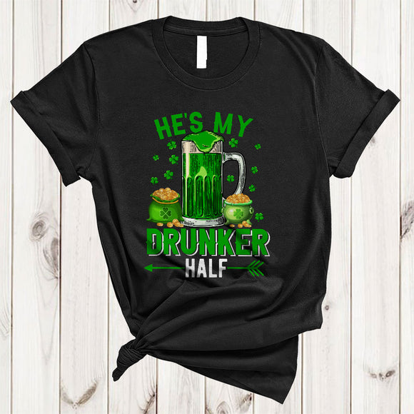 He's My Drunker Half, Awesome St. Patrick's Day Green Beer Glass, Couple Drinking Team T-Shirt