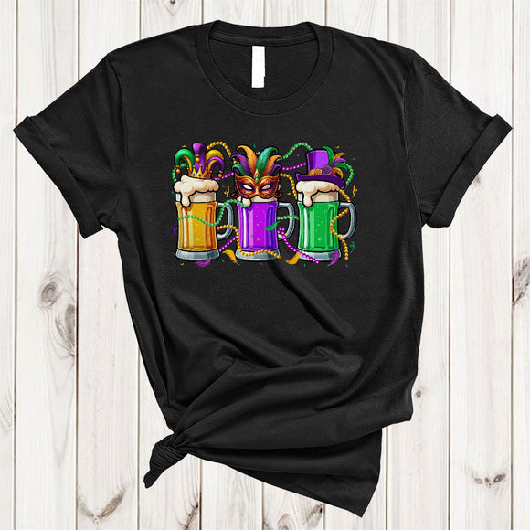 Three Mardi Gras Beer Glasses, Humorous Mardi Gras Beads Drinking, Festival Parade Group T-Shirt
