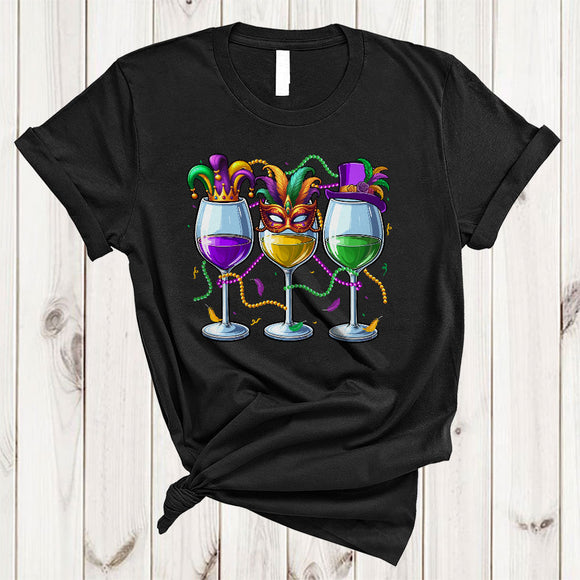 Three Mardi Gras Wine Glasses, Humorous Mardi Gras Beads Drinking, Festival Parade Group T-Shirt