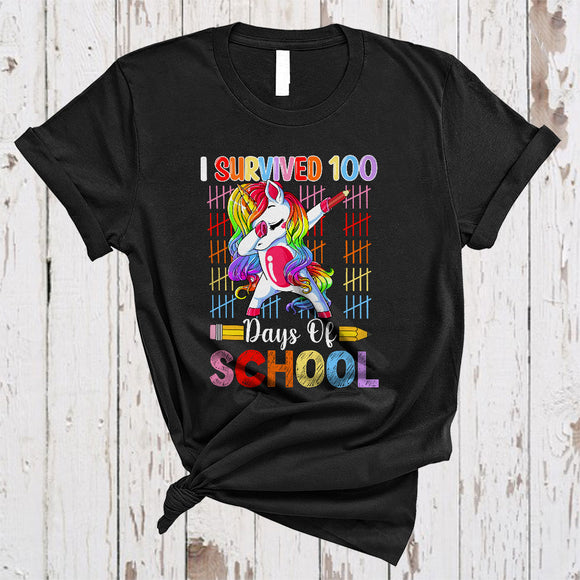 I Survived 100 Days Of School, Joyful Dabbing Unicorn Lover, Matching Teacher Students Group T-Shirt