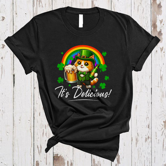 It's Delicious, Adorable St. Patrick's Day Cat Drinking Beer, Lucky Shamrock Rainbow Lover T-Shirt