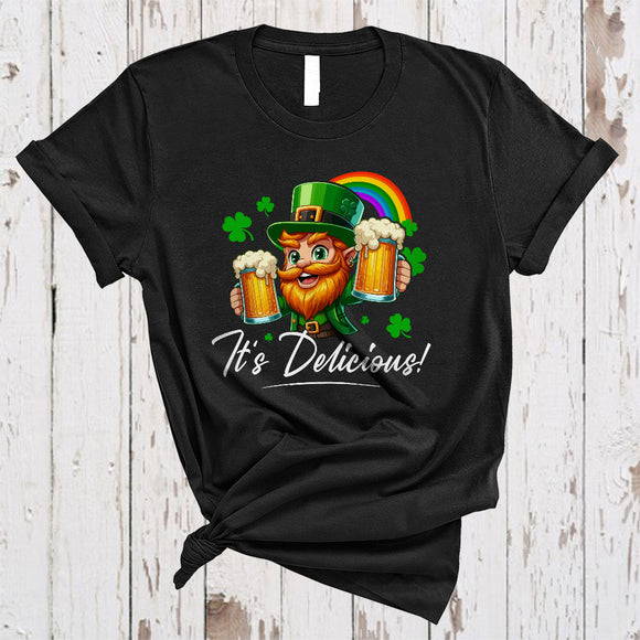It's Delicious, Adorable St. Patrick's Day Leprechaun Drinking Beer, Lucky Shamrock Rainbow T-Shirt