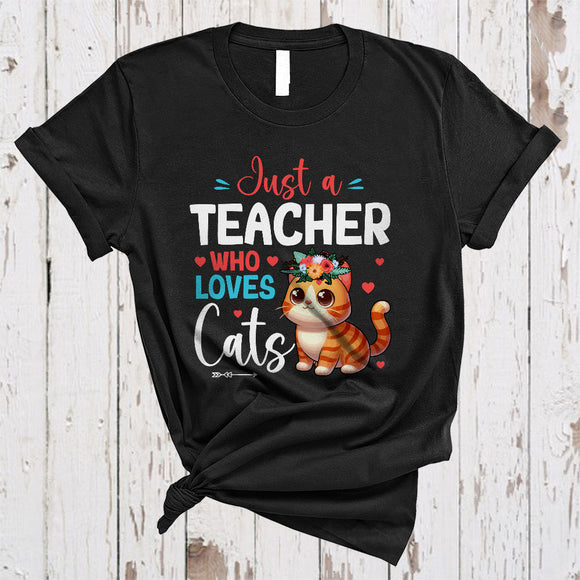 Just A Teacher Who Loves Cats, Adorable Floral Flowers Cat, Matching Teacher Group T-Shirt