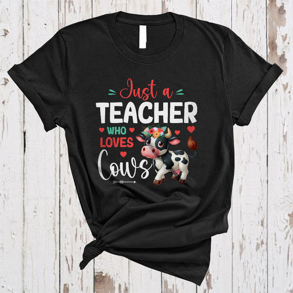 Just A Teacher Who Loves Cows, Adorable Floral Flowers Cow, Matching Teacher Group T-Shirt