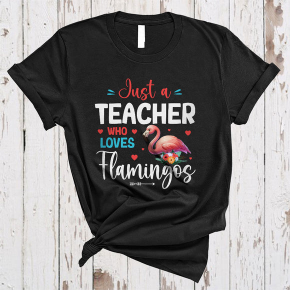 Just A Teacher Who Loves Flamingos, Adorable Floral Flowers Flamingo, Matching Teacher Group T-Shirt